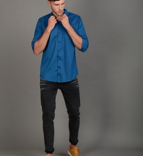 Men Slim Fit Solid Slim Collar Casual Shirt